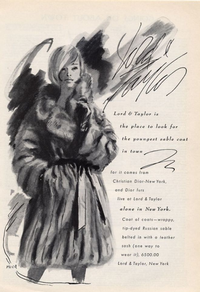 A couple of years ago I wrote about Irwin Caplan, a well-known cartoonist who taught fashion art back when I was in art school. Caplan regularly brought a copy of the Sunday edition of The New York Times to the classroom so that we could paw through it and see what the top fashion illustrators were doing. Since Lord & Taylor advertised heavily in the Sunday Times, we got to see a lot of Hood's work.