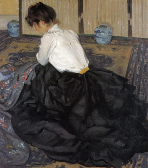 Below are two examples of Maurer's work from 1901 that were shown in my previous post about him along with photos I took of the Huntington painting.