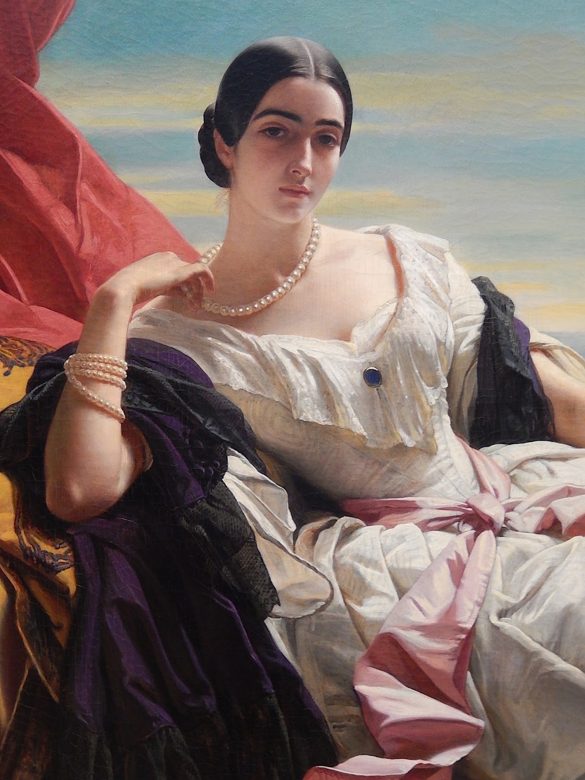Setting that aside, let's turn to Leonilla's portrait and a few other Winterhalters to provide context. Included are two photos I took in April at the Getty that you might want to click on to enlarge.