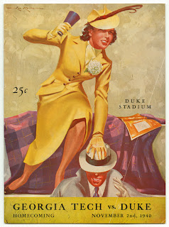 The end of the American college football season is nigh. For no special reason, this brings to mind the game program publication featuring team rosters surrounded by college sports-related articles and advertising. More specifically, I think of program covers from the days when illustration -- rather than photography -- was in flower.