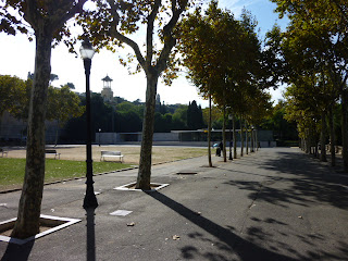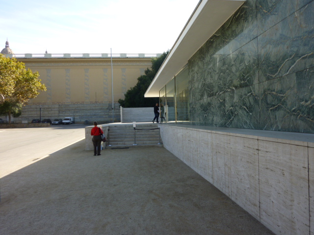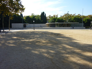 I mentioned above that many sets of photos exist of the rebuilt pavilion; they are all over the Web. Many are of nice, professional quality. Nevertheless, I thought I'd use this post to toss in my two bits worth of photos taken during a brief visit I paid while on my way to the big museum featuring Catalonian art. Here goes: