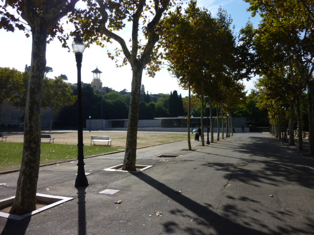 Here's the entrance approach for those coming from the direction of the Plaça d'Espanya. You climb those steps and deal with the fellow on the platform to pay admission.