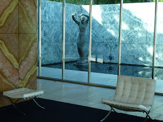 I confess that when in high school and college, I loved gazing at black and white photos of the original pavilion and lamenting its loss. And despite the aesthetic ruin manifested by across-the-board modernist architecture we have to live with today, I retain a soft spot in my heart for the pavilion -- van der Rohe's only real masterpiece (in my opinion, of course).