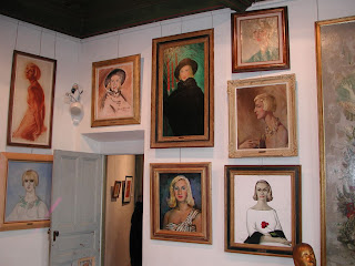 Solidor lived the later part of her life in Cagnes-sur-Mer and left some of the paintings to the city. Shown is part of a display of them. The painting on the left with a blue background is by Picabia; another Picabia painting is below. Click on the image above to enlarge.