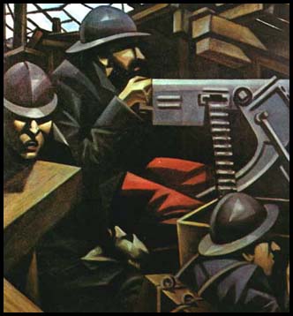This is perhaps Nevinson's best-known painting. It abstracts what he possibly viewed in more ways than one.