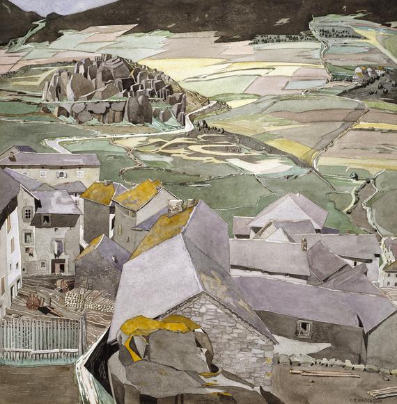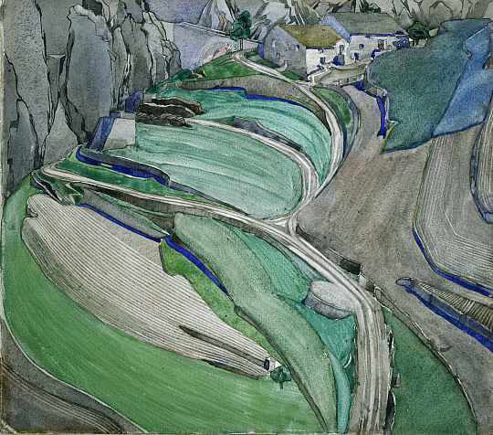 By this time Mackintosh had become a full-time watercolorist. Besides the coast, he frequented the nearby eastern tail of the Pyrenees with its combination or terrain and picturesque villages whose buildings must have appealed to his architectural sense.