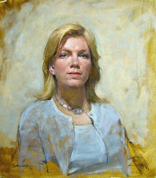 I like Silverman's work a lot. He is extremely good at faces, which is why he has gotten many portrait commissions over the years since he abandoned his career as an illustrator. Plus, he has a quirk that fascinates me. Note that he includes fine, black lines in finished paintings. Some appear to be little accents that help define the structure of his subject. Others are more like the residue of sketching.