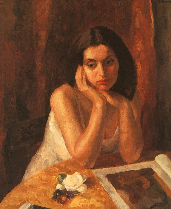 Alvarez was a modernist of sorts whose paintings made use of the modernist vocabulary to a sometimes greater -- but usually far lesser -- extent. As can be seen below, people portrayed in the paintings seem to be exclusively women.