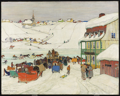 That would be the case for many of the works of Clarence Gagnon (1881-1942), a Québecois painter contemporary of the better-known Group of Seven. Rather than abandon civilization for painting sprees in the northern Ontario wilderness as most of the Seven did, Gagnon's preferred inspiration was village and country life along the St. Lawrence River.