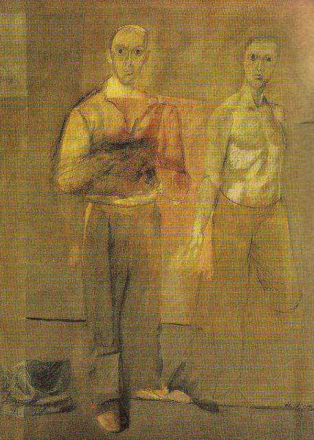 Willem de Kooning (1904-1997) is best known for "action" paintings such as his "Woman" series. Below is the first of that line, done around 1950-52.