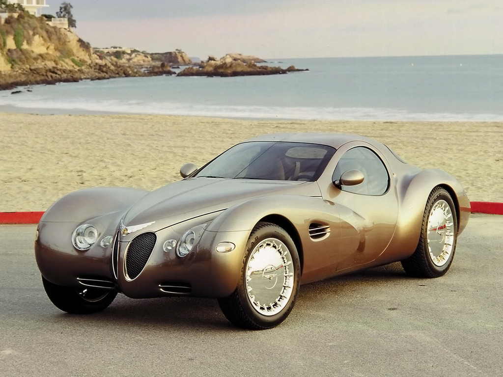 Only three Atlantiques were ever built, but the design is considered by many as one of the high points of Bugatti style. The Chrysler version pulls the body elements into a more integrated package, the strongest holdover from the 57SC being the shape of the side windows. The overall effect strikes me as being aggressively fussy, but nevertheless likeable.