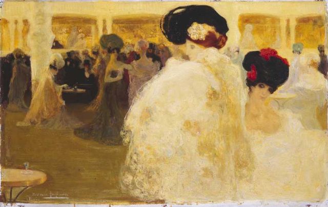 Spanish artists have the reputation of being especially fond of the color black, and Anglada used his share. But he also made good use of bright colors to the point where some of his work has been associated with Fauvism, a movement he was well aware of. He also has been mentioned as a kind of Catalonian Gustav Klimt with respect to his treatment of women in some of his paintings.