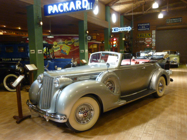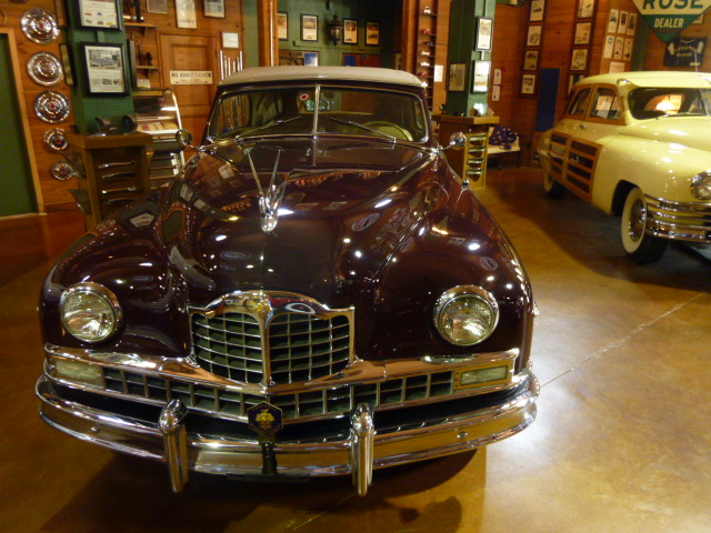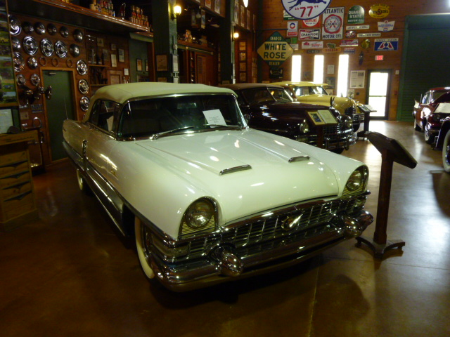 What the museum's not is glitzy or over-curated. No shiny black floors and spotlights like the Blackhawk museum in California. No faux street scenes as in the ex-Harrah museum in Reno, the Petersen museum in Los Angeles or the Henry Ford museum near Detroit. Just all kinds of stuff everywhere. That stuff includes custom car designer renderings from the 1930s, framed car ads for many brands, cases containing shelves of hood ornaments, gasoline station and car dealer service signs, and much more potentially fascinating clutter. There's even a small room in homage of Franklin D. Roosevelt who for some reason didn't seem to favor Packards. Nobody's perfect.