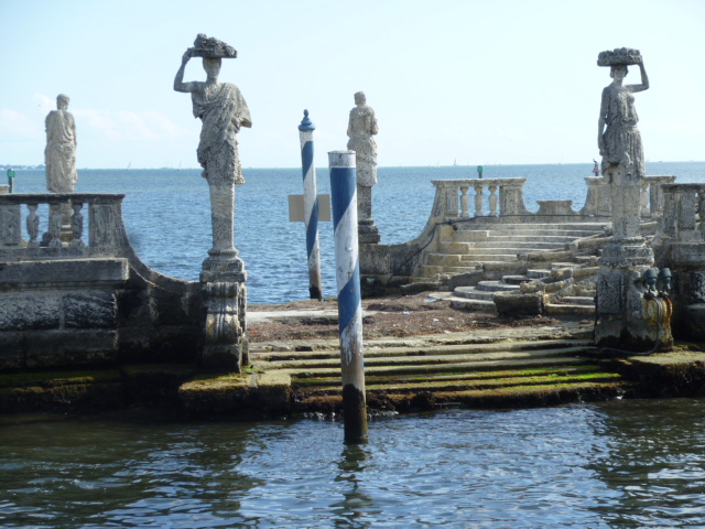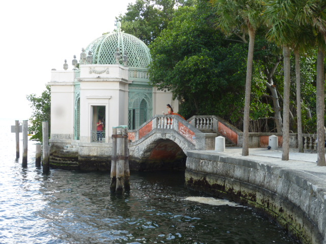 A few miles down the shoreline road from downtown Miami is the Vizcaya estate, built by the bachelor scion of a farm equipment manufacturer who, like other rich Americans, brought many objects of art and architecture from Europe to the New World. The Wikipedia entry on Vizcaya is here. Photography of the interior is forbidden, so I can offer only some exterior views.