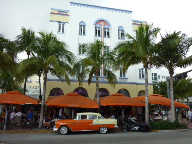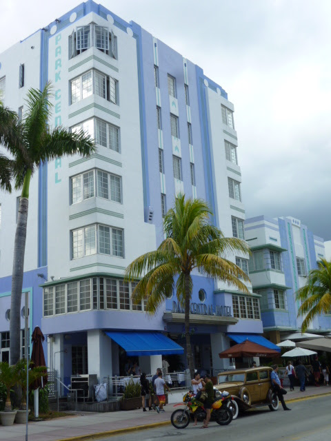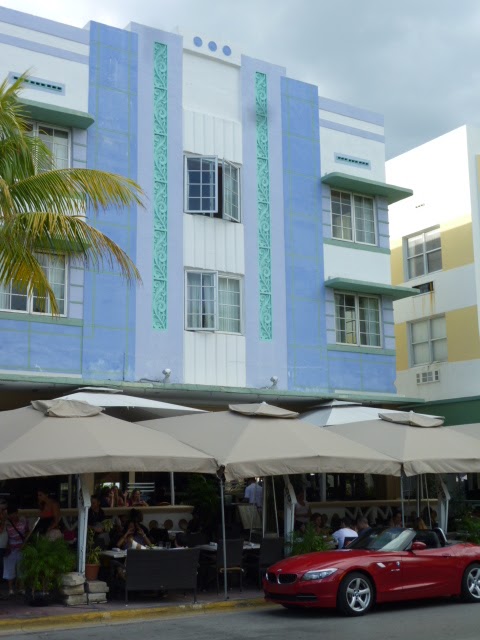 The South Beach portion of Miami Beach is perhaps best known these days for its collection of Art Deco style hotels that were built in the 1930s and very early 1940s. Aside from the buildings, I have to say I'm not fond of South Beach, lively though it can be. Many of those buildings along Ocean Drive have restaurants by or even on the sidewalks, and there are so many and competition is so fierce that a number of them hire pretty girls to entice you to a meal.