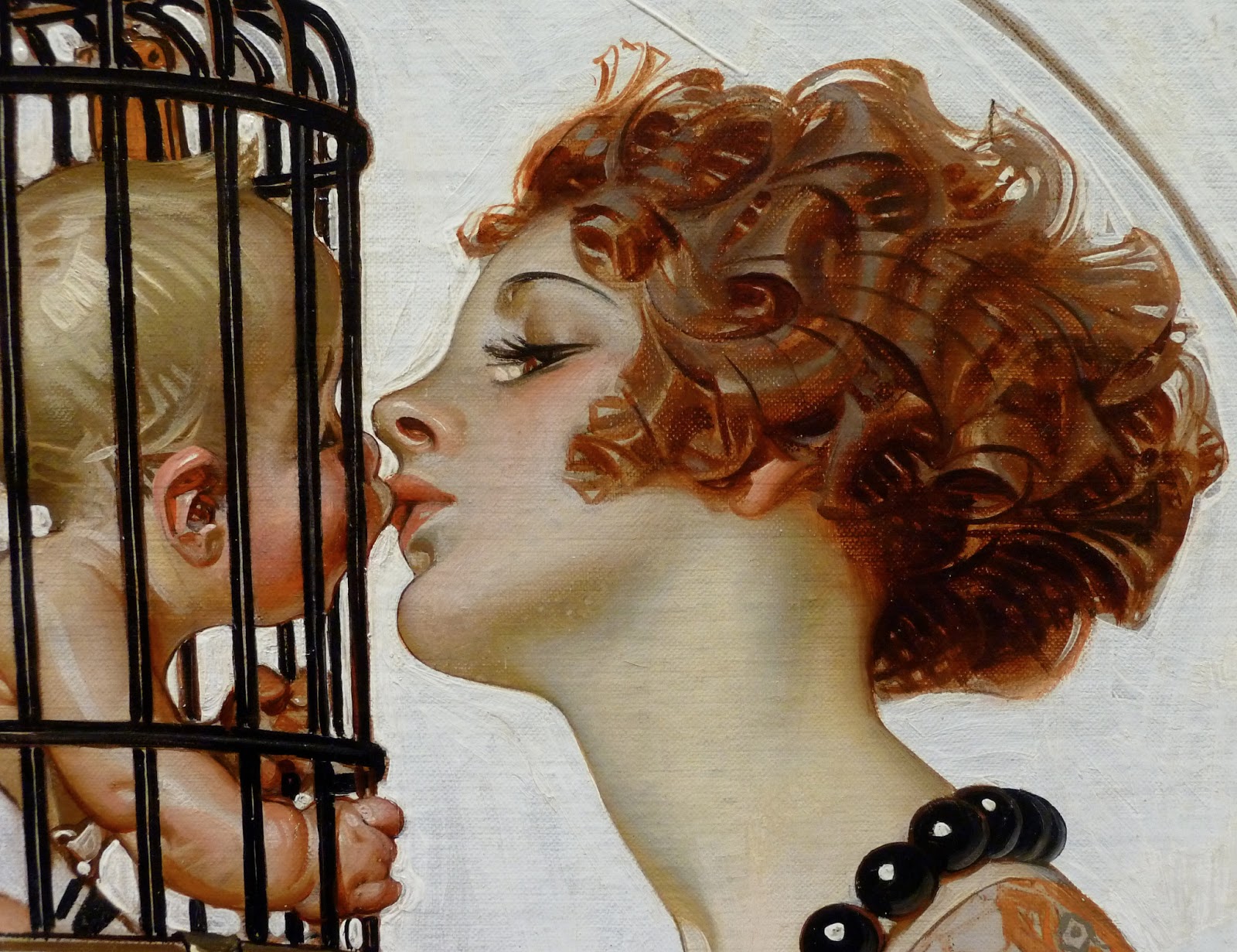 First is an illustration called "Florist" for the Spring 1920 Kuppenheimer Style Book, Kuppenheimer being a mens' clothing company. The second is called "Woman Kissing Cupid," and was the cover art for the 31 March 1923 Saturday Evening Post.