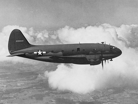 This future usage was unknown, of course, around 1937 when the Commando was first conceived as the CW-20 design. It was to be a large, twin-engine passenger transport with a figure-8 fuselage cross-section. The upper bulge was to be pressurized (a radical step, then) and the smaller, lower bulge left unpressurized for mail and other cargo. As it turned out, no pressurized version was ever built. As for "large," the Commando's wingspan was 108 feet (33 m), more than four feet wider than that of the brand-new Boeing YB-17, the Army Air Corps' newest four-engine bomber.