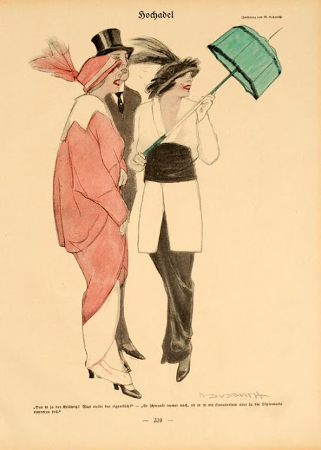Dudovich was a contributor to several magazines, including the famous German Simplicissimus. The illustration shown here is from 1913. Due to the Great War and Italy's eventual participation on the side of the Allies, Dudovich had to terminate his relationship with the publication.