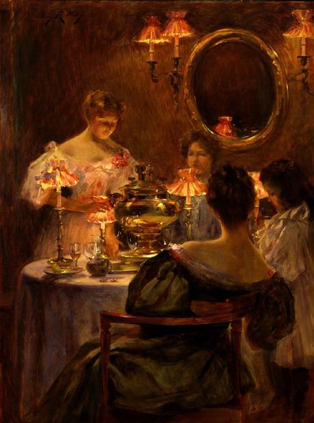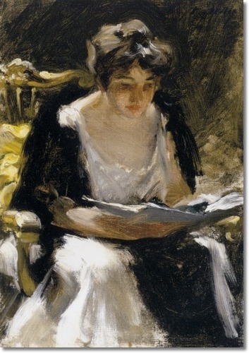 One artist who skillfully portrayed many women was Irving Ramsey Wiles (1861-1948). Internet information on Wiles is pretty sparse. Here is his Wikipedia entry, and Charley Parker posted about him here. At the bottom, Parker mentions a book about Wiles that was forthcoming at the time he wrote the post. I looked it up on Amazon and saw that some of the reader reviews were very negative, mostly because the book apparently was poorly illustrated (few images, and those mostly in black and white).