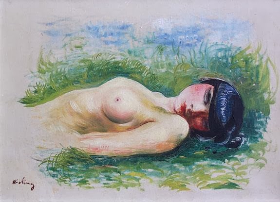 Although Kisling maintained a base in Paris, he spent much of his time in the Riviera. He was sociable, with many friends in the School of Paris collection of artists as well as other modernists. His sociability was perhaps outshone by his wife, Renée (1896-1960), daughter of career cavalry officer Jules-Chalres-Émile Gros. She was not pretty by most standards, but compensated via her personality.