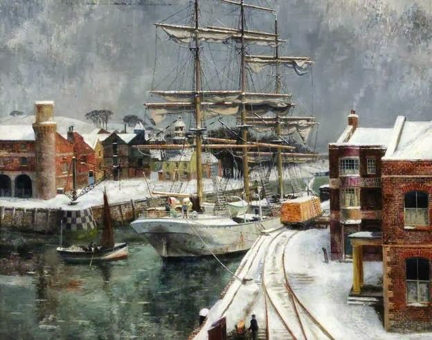 Eurich was skilled enough to be able to paint well in almost any style. His earliest paintings are in the distorted, simplified representational mode of the interwar period. By the mid-1930s he was making some correctly proportioned representational works. He continued in this vein during World War 2, when he was a war artist specializing in naval subjects, and for several years beyond. In his later years, Eurich mostly painted rather flat scenes that included sketchy, distorted people. These might have been influenced by postwar abstract art, though he does not seem to have made any or many pure abstractions.