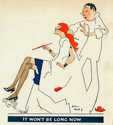 Now to Held's cartooning that brought him fame. This is from a Life magazine cover depicting a young woman getting her tresses trimmed, completing her transition to Roaring Twenties flapperdom.