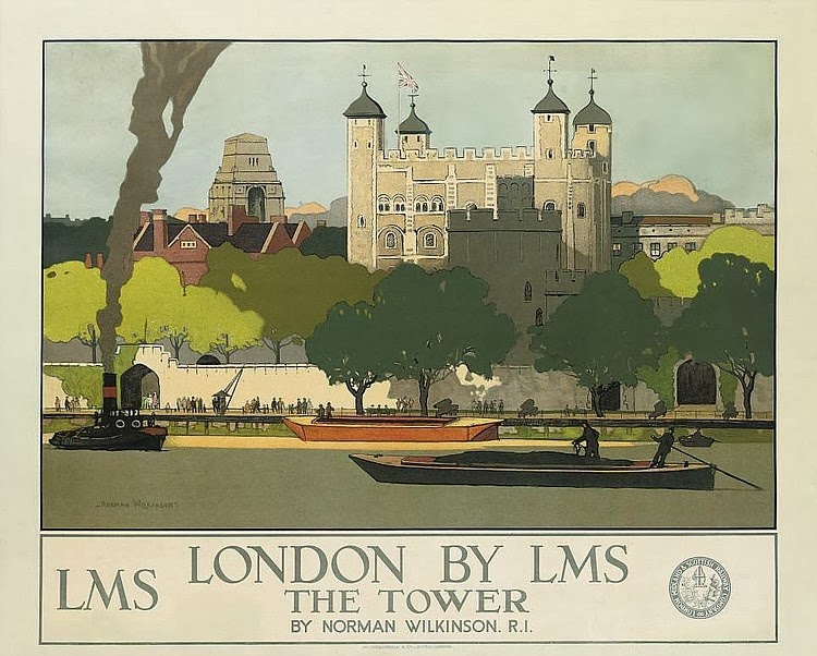 Of course, London itself was a tourist destination for people living in other parts of the UK. True to form (as all the other images shown indicate), Wilkinson includes water -- in this case the River Thames. I chose to use a downstream sequence of views for the three posters shown above.