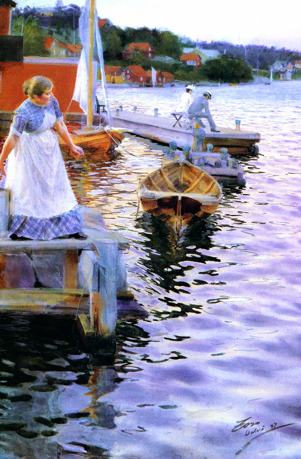 As it happened, Zorn began his career as a watercolorist, and naturally was excellent at it. Viewing some of his watercolors -- especially in reproduction -- they often look more like oil paintings. Perhaps one reason for this is that he sometimes painted thickly (not using much water) or perhaps did some areas in gouache, a different water-based paint. Other works were entirely in gouache, which handles more like oil paint than ordinary watercolors.
