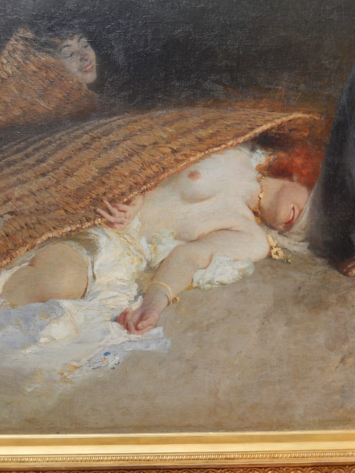 As his Wikipedia entry) indicates, Morelli (1823-1901) spent most of his career in his native Naples, concentrating on religious subjects. Le Tentazioni di Sant'Antonio (1878) is one of the best known of these. He also painted portraits. As a bonus, I include photos of his Teresa Maglione Oneto (1879) which was also on display at the Arte Moderna. Click on the images to enlarge.