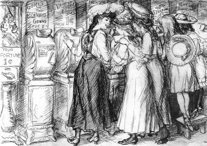 In any case, my take on Sloan is that some of his better work was done as a newspaper illustrator based on examples I've seen in print, but not on the Internet. For what it's worth, below are examples of Sloan's monochrome work from the 1900-10 decade along with a color illustration and one painting.