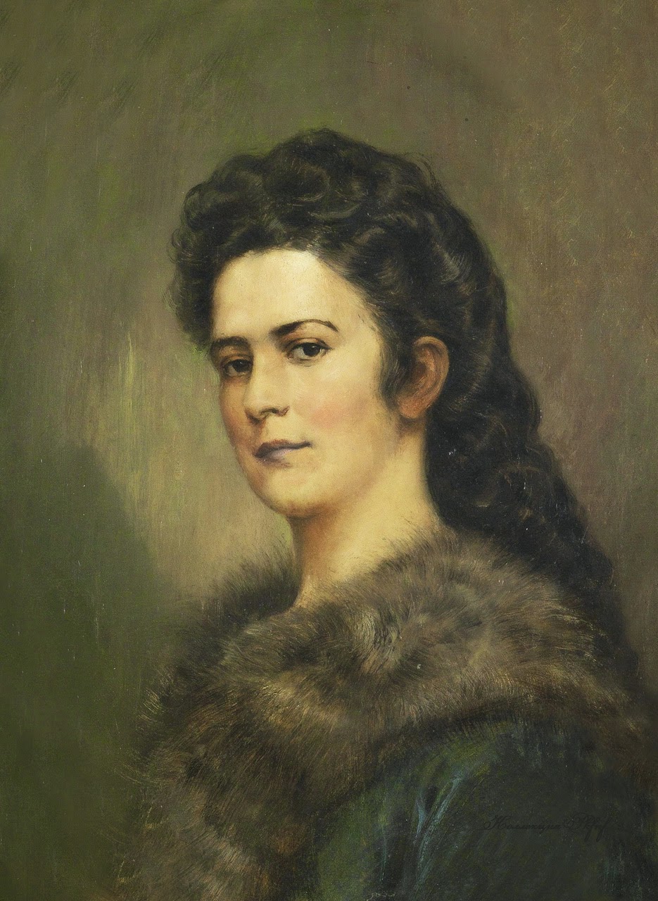 Probably posthumous.  This, and several of the portraits below are dated the year of her death or the year after, and were likely derived from photographs in tribute to the departed empress.  Let us know in a comment if any of these "posthumous" works were actually painted from life.