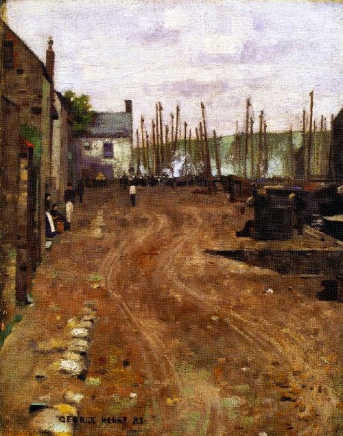 George Henry (1858–1943) was a prominent member of a group of Scottish painters known as the Glasgow Boys. The "Boys" were strongly influenced by the French painter Jules Bastien-Lepage whose works were exhibited in London 1878-82. Glasgow Boys paintings tended to be toned-down, featuring earth colors such as browns, ochres, faded greens and such -- in line with what northern Europe offered in dreary terms of light and foliage for a good part of the year.