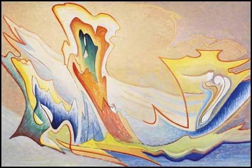 Theosophy-related concerns seem to have strongly influenced Harris's drift from representational to abstract painting over the arc of his career. The turning point took place during the years he lived an Santa Fe, New Mexico, whose art colony included other budding abstractionists.