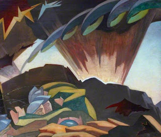 The link above mentions that he was trained in architecture, but shifted his attention to painting. From the evidence of a photo of him in uniform in the link along with a painting (see below), Robertson served in some capacity in the Great War. Finally, it seems that he was a heavy drinker, this affecting his peculiar marriage arrangement and quite likely his artistic career.