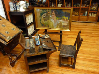 Looking down on a hall area. The house is laden with objets d'art, as can be seen in this and following photos. These were present when Sorolla lived here.