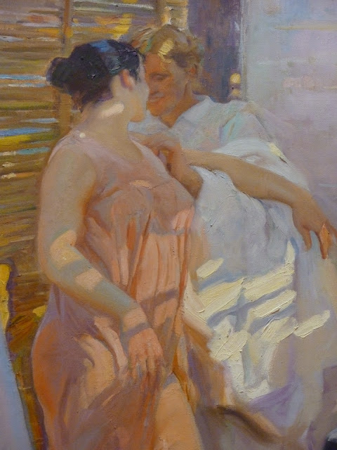 All this is a kind of excuse/apology/rationalization for the spotty quality of the high resolution photos shown below that are intended to provide insights regarding Sorolla's color selection and brushwork. These photos are not as good as I intended, but they're what I took when I was on-site. So take a look and click to enlarge if you're interested and your computer allows it.