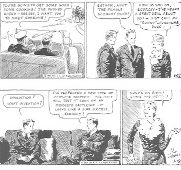 "Scorchy Smith" aviation-related comic strip. Its creator, John Terry (brother of Paul Terry who created the Terrytoons animated cartoons) was dying of tuberculosis and had to abandon it. Its syndicator, the Associated Press, wanted to save the strip because it was fairly popular. So staff artist