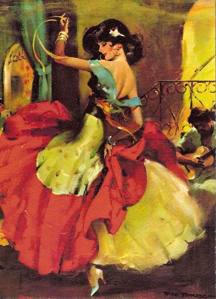 Rico Tomaso (1898-1985) was active when mass-circulation "glossy" (referring to printing stock) magazines were riding high and illustration was still king. Maybe that has to do with why he is nearly unknown today. There were plenty of illustrators at work then including many of the best ever, and while Tomaso was very good, he wasn't quite top-tier. Or perhaps his luck wasn't quite as good as some more famous illustrators who weren't as talented (I could name names, but leave that as an exercise for you readers for now).