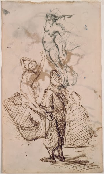The Barque of Dante (after Delacroix) c. 1870-73He spent a fair amount of time in the Louvre when in Paris. Here is his copy of a Delacroix. Details are mostly omitted, but the colors and shapes of the subjects in the original are fairly well captured.