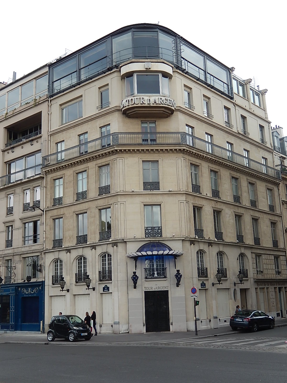 Finally, back along the Seine is one of Paris' top restaurants, the Tour d'Argent (Silver Tower). As this mentions, the restaurant and building are old, but the top floor with the large windows was added in 1936. I didn't eat here because I can't afford the food and probably wouldn't like it either. Plus, it was closed the day I took the photo.