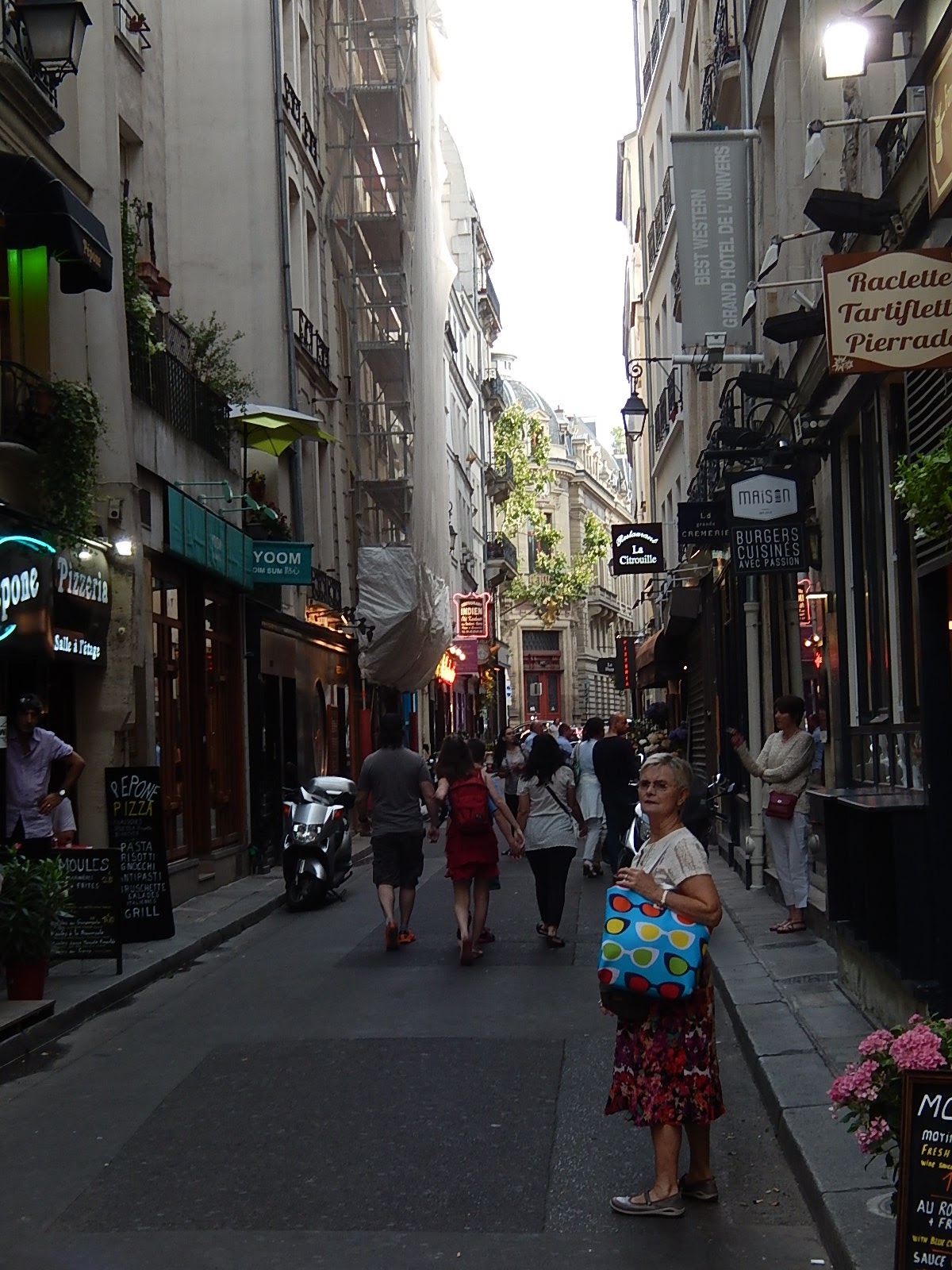 Let's start here on the northern segment of the rue. That's my wife impatiently waiting for me to get moving. First, we'll look at the domed building in the background.