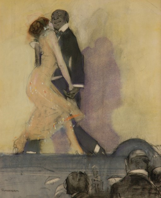 Dans leur loge à l'Opéra de Paris, sujet "moderne" que la fin du XIXe siècle a mis à l'honneur, sont représentés Gaston [Bernheim, the art dealer], debout au centre, avec, à sa droite, sa belle-soeur Mathilde, à sa gauche, son épouse Suzanne, et à l'arrière-plan, son frère aîné, Josse.